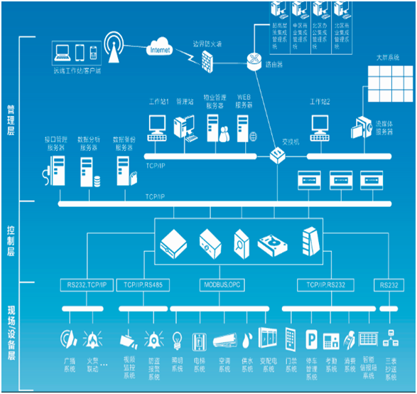 智能建筑管理系統(tǒng)IBMS是在BAS的基礎(chǔ)上更進(jìn)一步的與通信網(wǎng)絡(luò)系統(tǒng)、信息網(wǎng)絡(luò)系統(tǒng)實(shí)現(xiàn)更高一層的建筑集成解決方案,將建筑設(shè)施內(nèi)重要的系統(tǒng),如暖通空調(diào)(HVAC)、能源管理、照明、視頻監(jiān)控、安全防范、消防、生命安全和其它系統(tǒng),集成到統(tǒng)一的平臺(tái),使相關(guān)人員可以在任何地點(diǎn)使用標(biāo)準(zhǔn)的 Web 瀏覽器來(lái)監(jiān)測(cè)、管理和控制各種設(shè)施、能源、以及安防系統(tǒng)等。接點(diǎn)IBMS具備高彈性架構(gòu),采用開(kāi)放性平臺(tái),擴(kuò)展型強(qiáng);自主開(kāi)發(fā)各種主流品牌和協(xié)議的驅(qū)動(dòng);通過(guò)JOINTT智能網(wǎng)關(guān)分散部署;可替代部分簡(jiǎn)單子系統(tǒng)的控制;適用于不同規(guī)模的單棟或多棟建筑。
